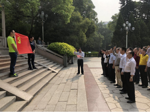 4月3日,揭阳农垦集团公司(农垦局)机关党支部27名党员在揭阳市榕江公园烈士陵园举行重温入党誓词、缅怀革命先烈活动。