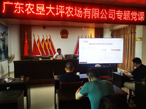 7月22日上午,揭阳农垦集团有限公司党组成员林小松同志到大坪农场有限公司讲党课,大坪农场有限公司40多名党员参加了活动,活动由大坪农场有限公司邓建生同志主持。