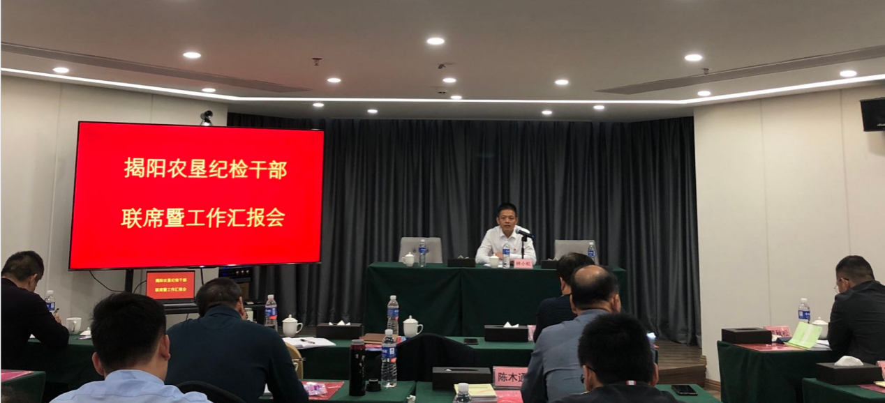 会议学习宣传贯彻党的十九届六中全会精神;林小松组长作《揭阳农垦纪检工作现状及思考》专题报告并作会议小结,林小松就垦区纪检工作以及纪检队伍的现状以及存在的问题进行全面分析,并提出具体要求。