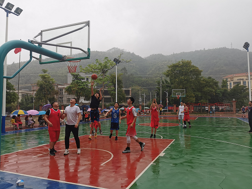 篮球友谊赛中,参赛队员们本着“友谊第一、比赛第二”的原则,积极进攻、严密防守、你争我夺、巧妙配合。经过激烈角逐,大坪农场代表队取得胜利。