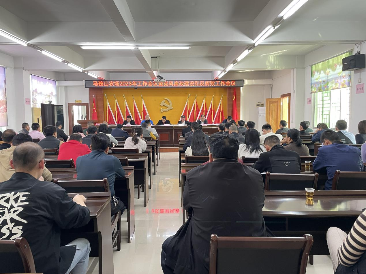 2月28日下午,马鞍山农场召开2023年工作会议。农场领导班子成员,场机关全体干部,驻场乡村振兴工作队、驻场财务、各村(居)管区两委干部、社工服务站点社工参加会议。会议由党委副书记、董事、副总经理谢廷喜主持。