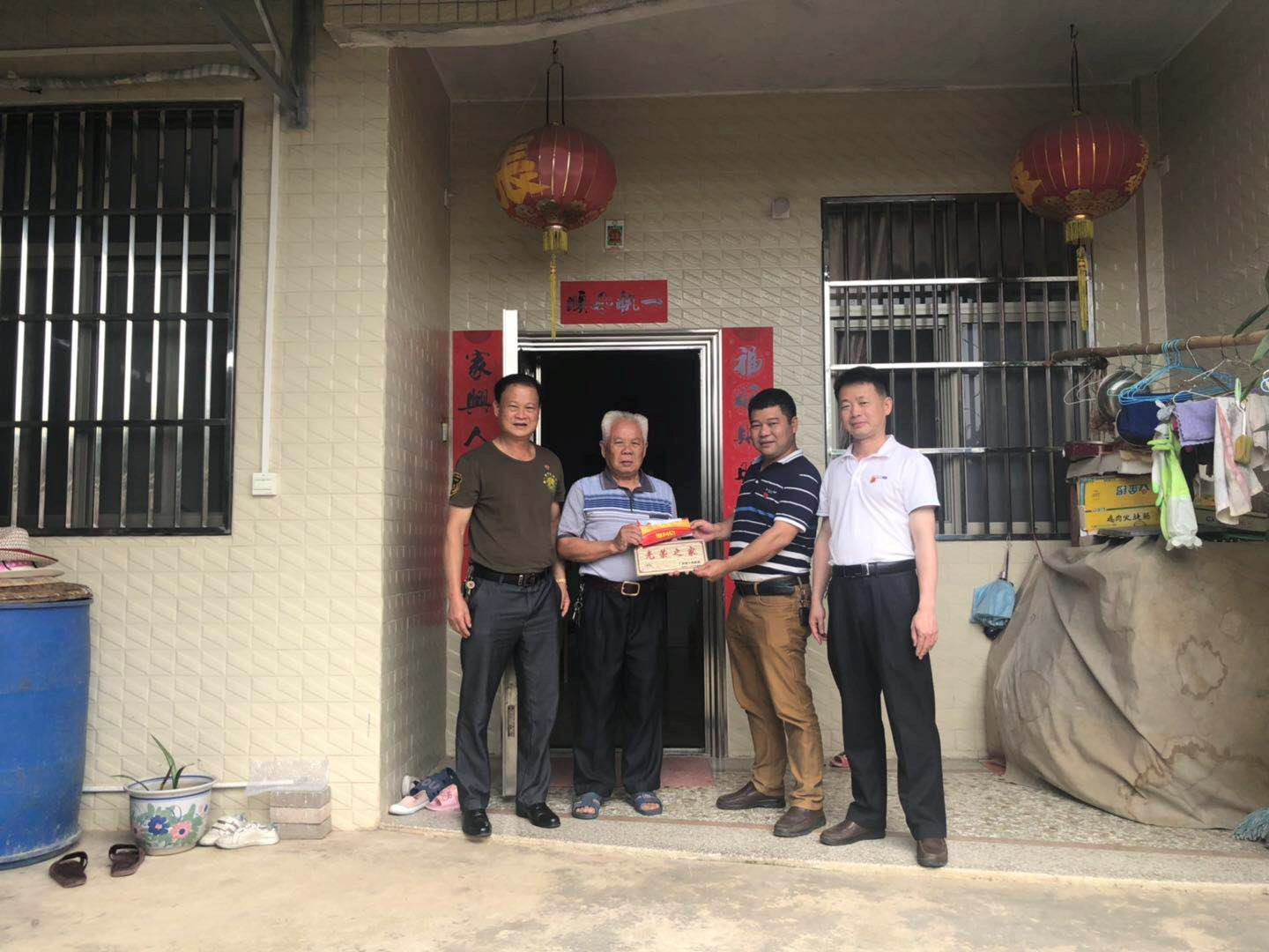 为贯彻落实习近平总书记重要指示精神和中央、省、市的决策部署,全面推进农场为军属和退役军人等家庭悬挂光荣牌工作,营造农场关爱、尊崇军人的浓厚氛围,积极传播社会正能量。4月29日,农场党委书记、场长卢国勤及相关部门对辖区内的现役、退役军人家庭开展上门悬挂光荣牌活动。