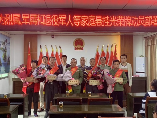 为贯彻落实中央、省、市有关文件精神,切实做好大坪农场为烈属、军属、退役军人等家庭悬挂光荣牌工作。4月15日上午,大坪农场举行悬挂光荣牌动员部署会暨启动仪式,会议由场党政办副主任钟文纵主持,场全体干部职工,各村居书记、主任,农场烈属、军属和退役军人代表,学生代表等60多人参加活动。